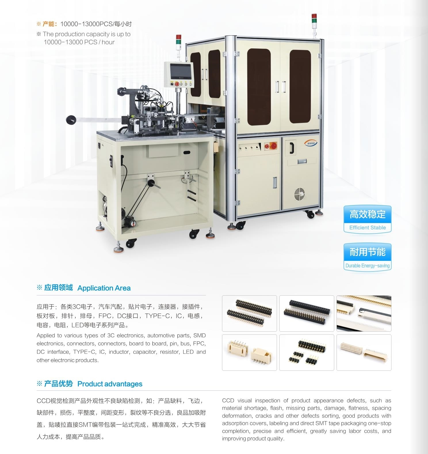CCD光學檢測高速分選+加吸附蓋、貼嘜拉+SMT編帶包裝機